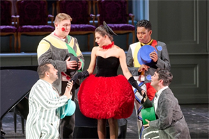 Dort trifft er auf alte Bekannte, darunter auch seine Frau Rosalinde, die sich als mysteriöse Unbekannte tarnt. Verkleidungen, Verwechslungen und unerwartete Wendungen halten die Gäste auf Trab, während sie sich in einem Strudel aus Musik, Champagner und Intrigen verfangen. Am Ende klären sich alle Missverständnisse auf, und die Charaktere feiern fröhlich das Leben und die Freundschaft.
